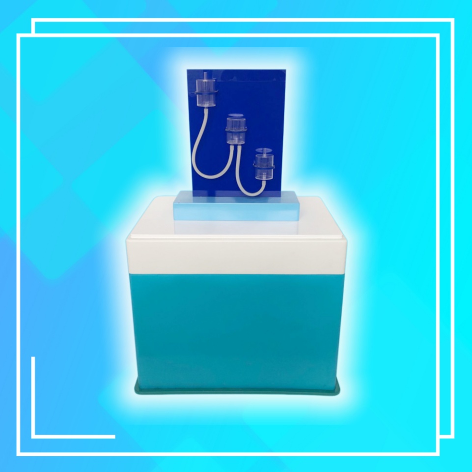 展項設置了水流裝置,向參觀者介紹水力發電的原理,讓其感受水的能量。參與者按下啟動按鈕,水流從高處落下,沖擊水輪,水輪轉動發電,LED燈珠亮起。上海慣量水力發電是一種無污染的綠色環保能源技術,只要能夠獲得穩定的水落差資源,就能驅動水輪葉片旋轉,進而帶動發電機源源不斷地向電網傳輸電能。本展項利用水流沖擊水輪機發電,點亮LED燈。