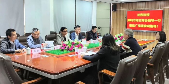 2026年1月30日下午,深圳市湖北商會曾勝學會長攜常務副會長兼教育聯合會向祥會長、胡文清副會長、理事毛火球及會員代表陳彪等一行蒞臨廣視通參觀指導。公司董事長陳登貴熱情接待并陪同交流。