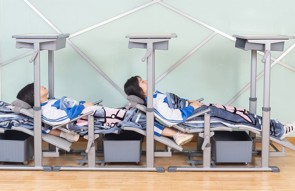 3、課斗規格:360mm*450mm*100mm±3mm,PP塑料一次成型,課桌底下前部設置藤質躺板。