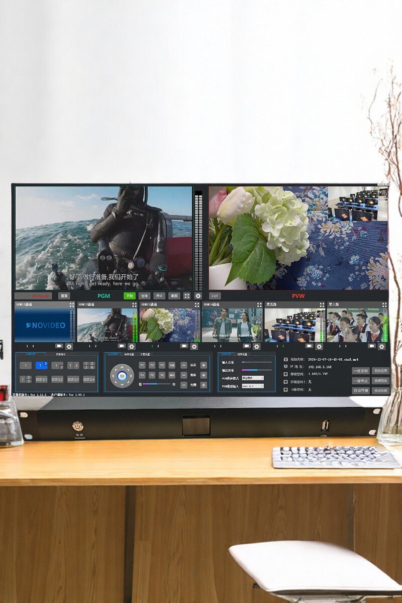 產品特色:  系統結構:一體嵌入系統嵌入式 Linux SOC 架構  設備高度:1U  視頻采集:硬件采集方式  視頻輸入接口:4*HDMI并向下兼容標  支持 HDMI 接線視頻和 IP 網絡攝像機流混合輸入  輸入分辨率:1080P60 1080i 720p @60/50/30/25  音頻輸入:2路3.5mm立體聲輸入接口  音頻輸入接口: 48khz采樣,AAC編碼  輸出接口:1路HDMI+1路VGA  音頻輸出:2路3.5mm立體聲輸出接口  網絡:1個1000M  串口:1個RS485, 2個232  網絡直播延時:<=3秒  錄制格式:MP4、TS  支持雙流不同設置碼率、幀率、分辨率直播輸出;支持同時多協議多平臺直播輸出  支持FTP和 NFS網絡路徑存儲  支持PGM模式,可選輸出操控界面、PGM合成畫面、1之6通道畫面輸出  支持 PGM 分屏混音功能  特技功能:支持無縫視音頻切換、淡入淡出切換、多種特效切換;支持單畫面與單畫面切換、單畫面與畫中畫或 1/2/3/4/5/6 分屏切換、支持分屏與分屏切換功能。  支持全通道視頻 6+1 路(支持4路HDMI+N個網絡流+MP4視頻文件),RTMP 推本機內嵌直播分發服務器,進行跨網段大并發直播輸出  支持搭配跟蹤攝像機,實現自動跟蹤、自動切換功能  支持定時錄制  錄播功能:同步錄制/同步直播/在線點播/遠程導播/互動錄播  支持HDMI屏幕+USB 鼠標操控, 遠程網絡電腦 Win 客戶端操控, web 瀏覽器、中控 設備操控  錄播模式:多流多畫面(資源模式)/單流單畫面(電影模式)/單流多畫面(畫中畫) |