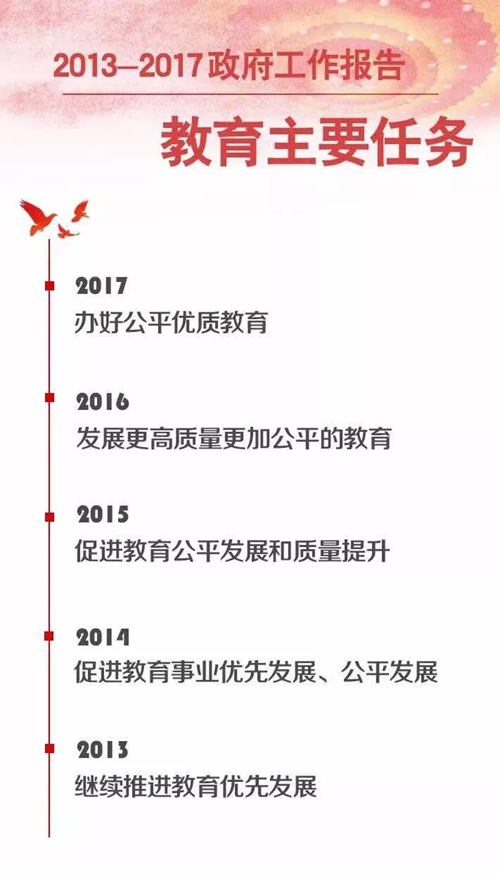 近年來,教育公平越來越受到國家層面的重視。回顧過去5年,政府工作報告的教育主要任務如下圖: