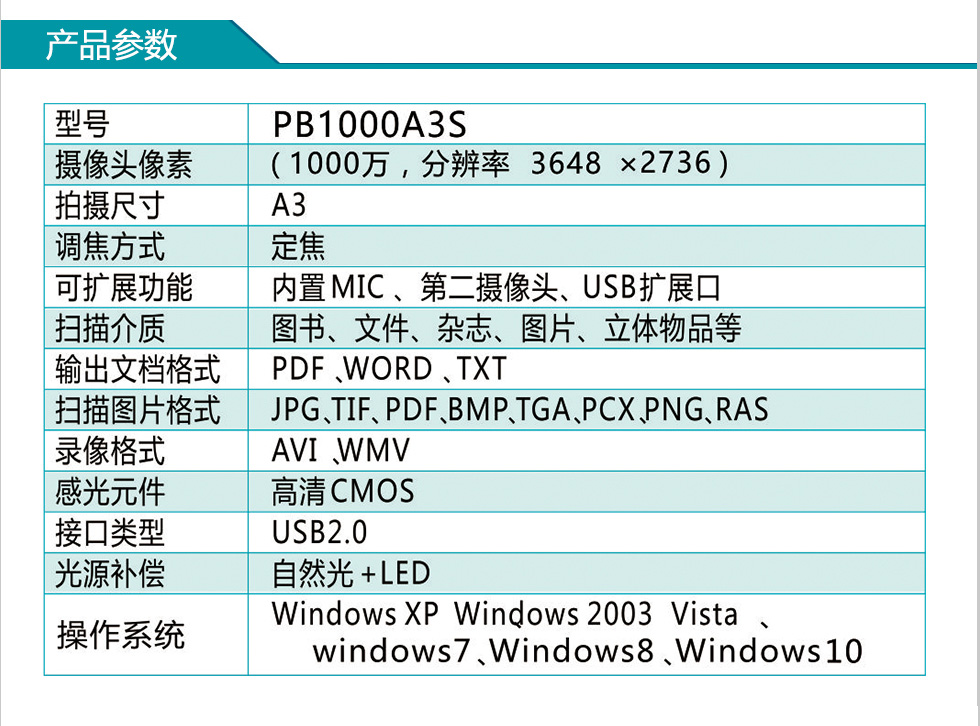 良田PB1000A3S壁掛式教育高拍儀1000萬像素