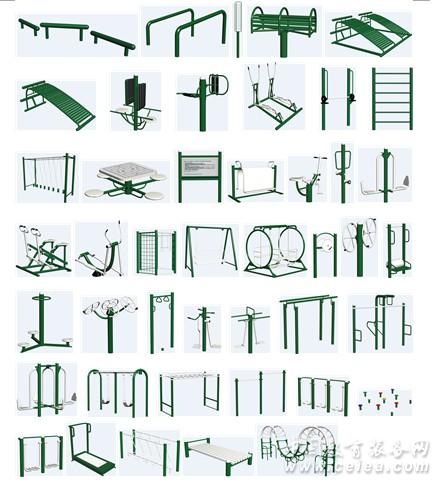 摸高器、三位蹬力器、雙位蹬力器、腿部按摩器、健騎機(jī)B、橢圓機(jī)B、雙位健騎機(jī)、雙位橢圓機(jī)、棋牌桌、組合攀高滑梯、告示牌A、雙位坐推器、雙位坐拉器、鐘擺器、單位漫步機(jī)、雙位坐蹬器、雙位大轉(zhuǎn)輪、三位扭腰器、雙人蹺蹺板、四人蹺蹺板、雙位腹肌板、三位壓腿器、橢圓機(jī)、腰背按摩器、自行車、懸吊旋轉(zhuǎn)輪、上肢牽引器、立撐器、太極輪、健騎器、腰背伸展器、棋牌桌、倒立架