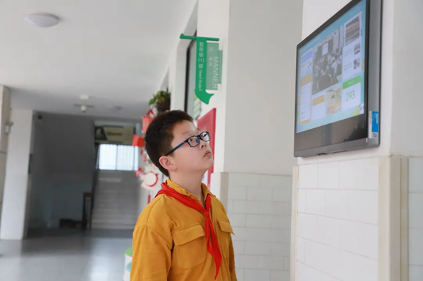 對(duì)于身處校園中的學(xué)子來(lái)說(shuō),沒(méi)有什么比“新鮮事”更能令他們印象深刻了。班主任向我們介紹,“班牌能發(fā)布圖片、視頻和資訊,我會(huì)把日常捕捉到的學(xué)生的精彩瞬間,每一次校園活動(dòng)諸如歌唱比賽、繪畫大賽中的風(fēng)采亮點(diǎn),學(xué)生的優(yōu)秀作品、獲獎(jiǎng)?wù)掌,進(jìn)行上傳展示。學(xué)生們也都會(huì)很積極地去查看,看新發(fā)布的照片中有沒(méi)有自己。師生可以一起打造本班的班級(jí)特色。”