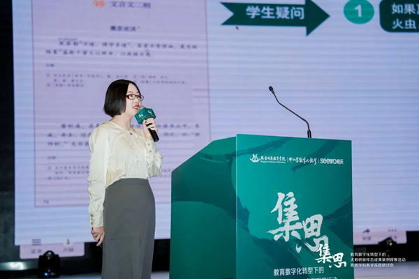 “如果夏天過去了,車胤不能再抓螢火蟲,他要怎么讀書呢?”這一疑問來自學生們上完《文言文二則》一課的課堂反饋。從學生的真實問題出發,來自北京的王麗娜、姜春艷、黃愛芬團隊開展了結合語文、科學、道德與法治學科的《叩問小古文》跨學科教學設計與實踐,讓學生從更深層次體會經典故事的文化精神內涵,培養學生的思維能力、探索能力和科學精神。在這堂課的集體備課過程中,最受教師們歡迎的是希沃集備工具的數據分析功能,教師們能夠及時看到備課中的高頻詞,從而進行教學反思和改善。