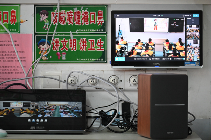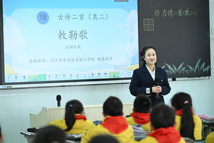 下午的活動(dòng)場地轉(zhuǎn)移至內(nèi)江市東興區(qū)實(shí)驗(yàn)小學(xué),進(jìn)入了實(shí)踐觀摩與經(jīng)驗(yàn)交流環(huán)節(jié)。十一節(jié)覆蓋各學(xué)段、各學(xué)科的優(yōu)質(zhì)智慧課例同步展示,每節(jié)課不僅由優(yōu)秀教師現(xiàn)場授課,還配備了專家即時(shí)點(diǎn)評(píng),并組織觀課教師研討,形成了“授課-點(diǎn)評(píng)-議課”的教研閉環(huán)。