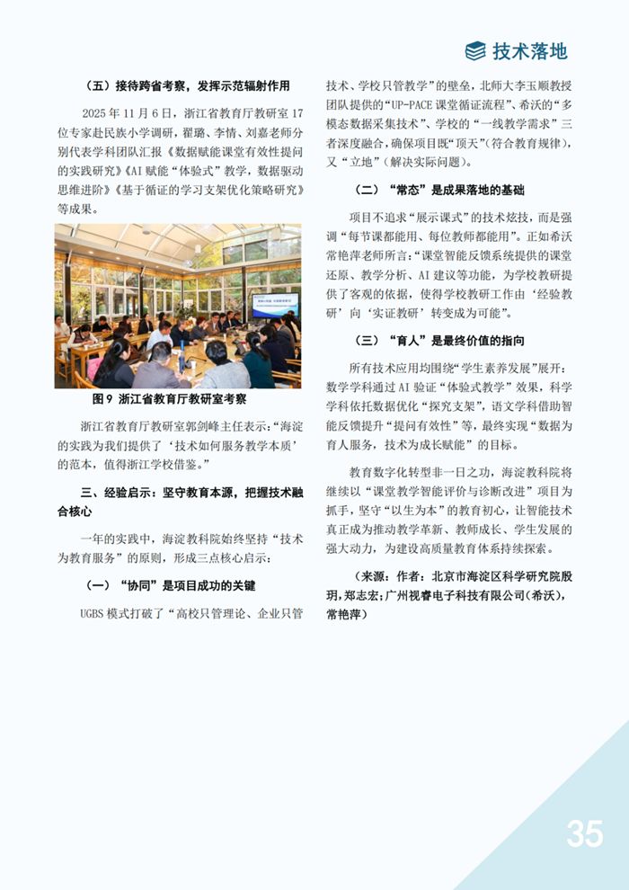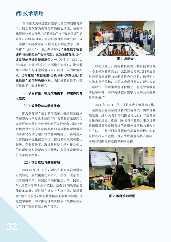此次發布的《海淀人工智能教育》聯盟刊,由北京市海淀區教育委員會主管,區教育科學研究院主辦,聚焦“從政策到落地、從技術到課堂、從個體探索到生態構建”的全鏈條,旨在展現海淀AI教育的創新實踐。首期會刊在技術落地板塊中,以近萬字篇幅刊載《<以智賦能循證教研以數驅動教學革新>——海淀區“課堂教學智能評價與診斷改進”合作項目的探索與實踐》一文,系統解析了希沃AI課堂反饋系統的技術內核,并全面梳理了希沃與海淀區的合作背景、實踐成果及經驗啟示,受到與會者的高度關注。