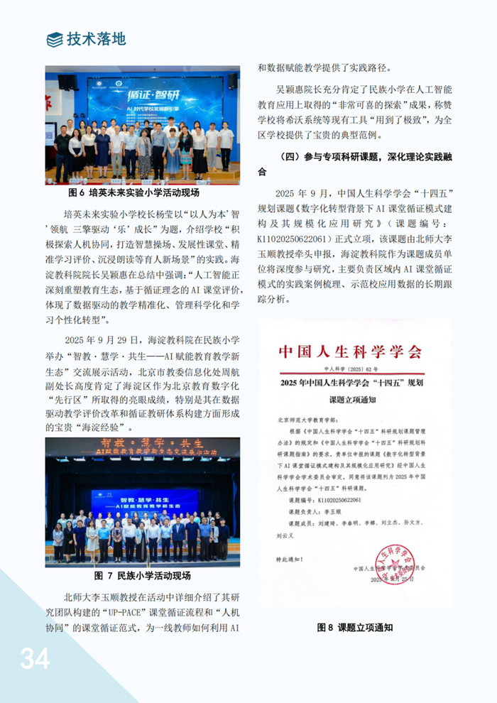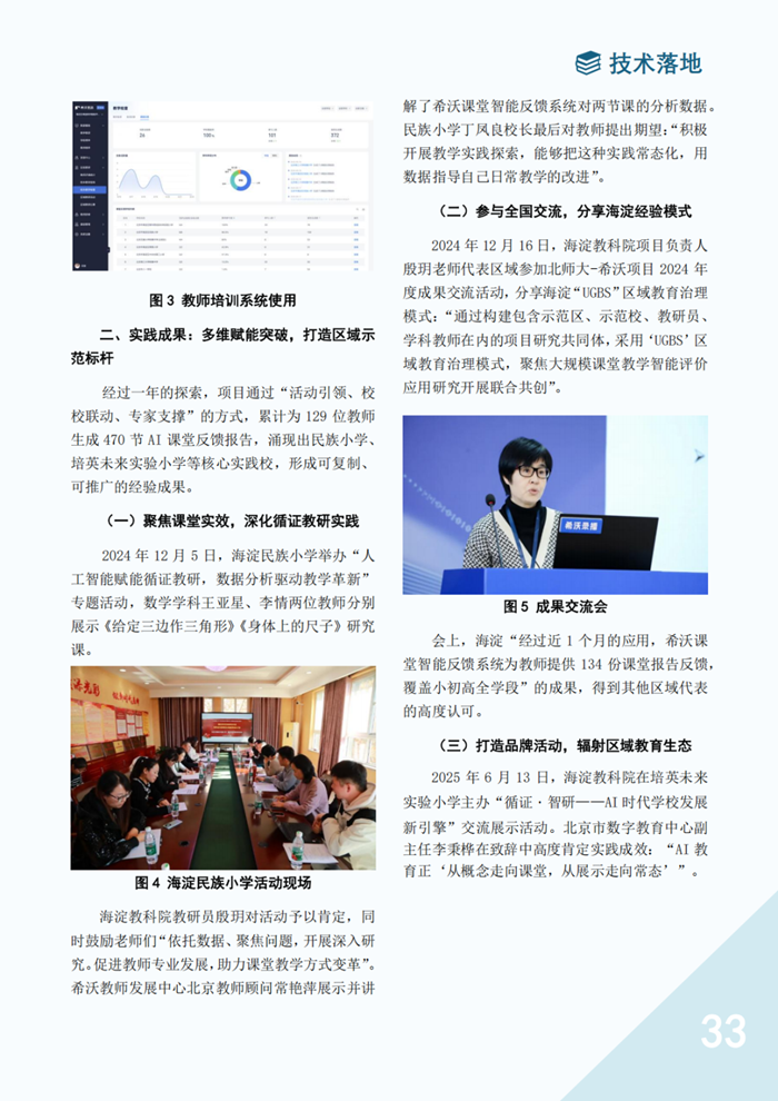 技術的實用性與易用性加速了“AI+教育”在海淀區的普及。截至目前,項目已累計為129位教師生成470節AI課堂反饋報告,覆蓋8所示范校的教學實踐,逐步實現每節課可用、每位教師會用。海淀區也借此契機,通過專題研討、跨區域交流、品牌活動等形式,推動“海淀經驗”走出校園、輻射全國。