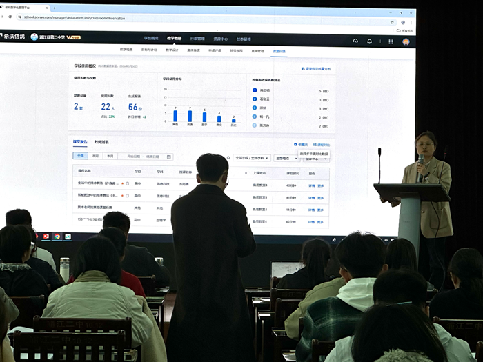 作為本次高規格活動的承辦方,浦江二中始終以教育數字化轉型為核心抓手,深耕數智賦能教育的創新實踐,打造了極具特色的智慧教育生態。學校立足人工智能與教育教學深度融合的發展方向,全面推進智慧校園建設,新校區全域布局希沃全系列智慧教育裝備,交互智能大屏、課堂智能反饋系統、移動錄播系統等實現全場景覆蓋。從日常課堂的精準教學到大型教研活動的高效開展,希沃穩定高效的智慧教學環境,不僅為全校師生帶來了沉浸式、個性化的優質教學體驗,更以堅實的技術支撐與一流的活動保障,為本次全市頂尖教研活動的圓滿舉辦筑牢了數智根基,充分彰顯了學校在教育數字化領域的領先實力與名校擔當。
