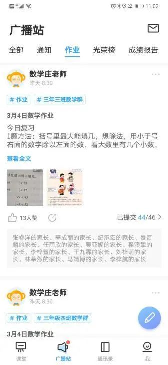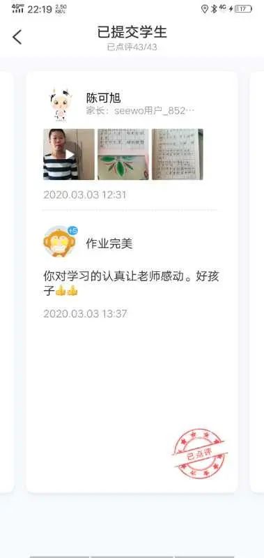 特別是希沃班級優化大師軟件應用網絡直播教學中,取得了顯著的效果。利用班級優化大師,下發通知和課后作業,還可以進行疫情期間學生體溫等信息的統計收集。學生作業打卡情況數據統計在班級優化大師上一目了然,大大提高了教師們的工作效率。