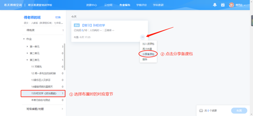 ②在添加備課包的資源的時候,要注意所有的資源已經加入資源包了才布置哦,這樣就能以一份資源包就收納所有資源