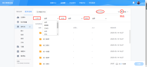 隨著咱們校本資源庫的建設(shè)逐漸豐富與完善,校本空間凝結(jié)了全校教師的智慧結(jié)晶,甚至可能多到存放了幾十上百個(gè)的文件夾,這時(shí)該怎么快速找到自己想要的資料呢?別擔(dān)心,各位老師只需要在云空間-校本空間搜索資料夾或者篩選對應(yīng)的分享人、年級(jí)、學(xué)科,就能快速精準(zhǔn)地定位到想要的資料啦!