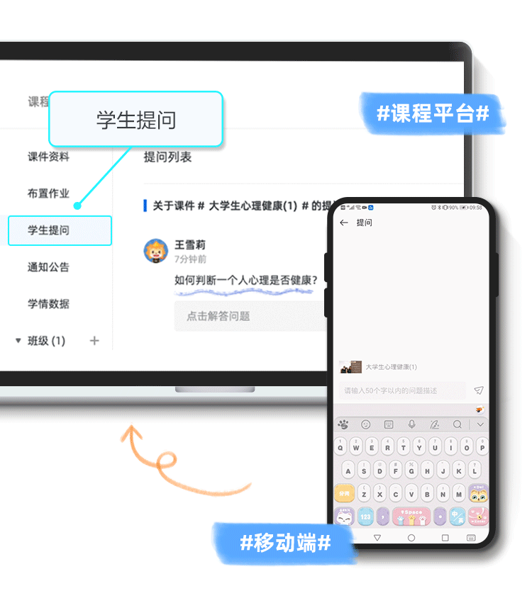 可隨時通過學生端提問