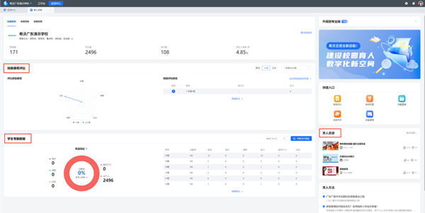 學(xué)校花都校區(qū)于2020年引入希沃魔方云提供的綜合育人方案,開展學(xué)生一體化管理建設(shè)。通過多場景多類型的智能考勤方案,進行了150余萬次考勤,人均293次,通過多角色多維度多數(shù)據(jù)的課堂評價,全校55個班所有課堂均開展考勤,通過完善的德育管理體系,創(chuàng)建80+類檢查項目,檢查超1.5萬條。從課前、課中、到課外,廣雅中學(xué)使用管理應(yīng)用打造一體化的學(xué)生管理閉環(huán),全方位提高學(xué)生日常管理的工作效率和質(zhì)量。