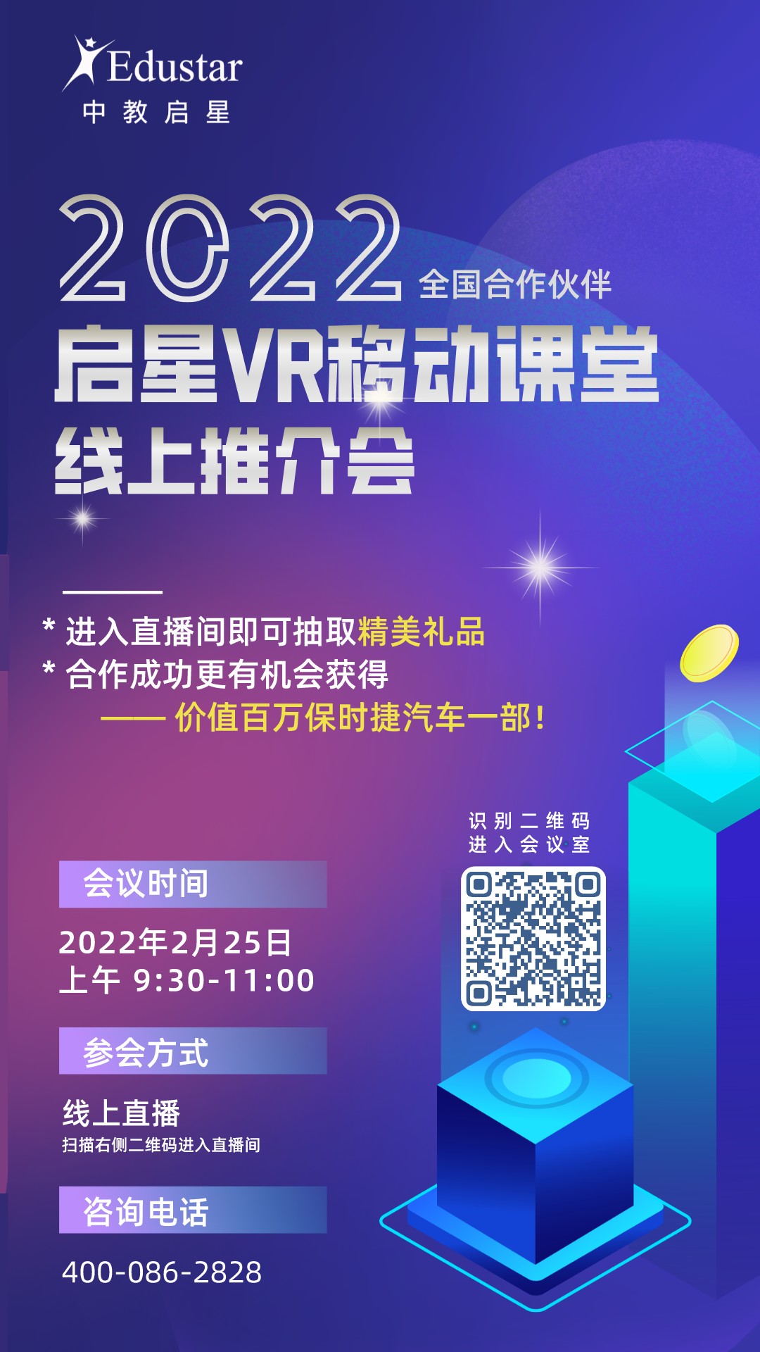 2022年為更好地協同開展項目合作,中教啟星安排召開“中教啟星2022全國合作伙伴-啟星VR移動課堂”線上推介會專題活動。