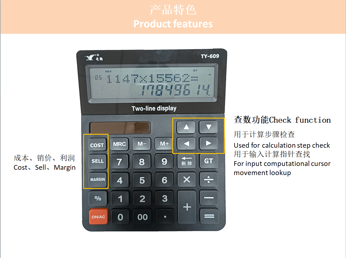 TY-609雙行雙電源臺式計算器