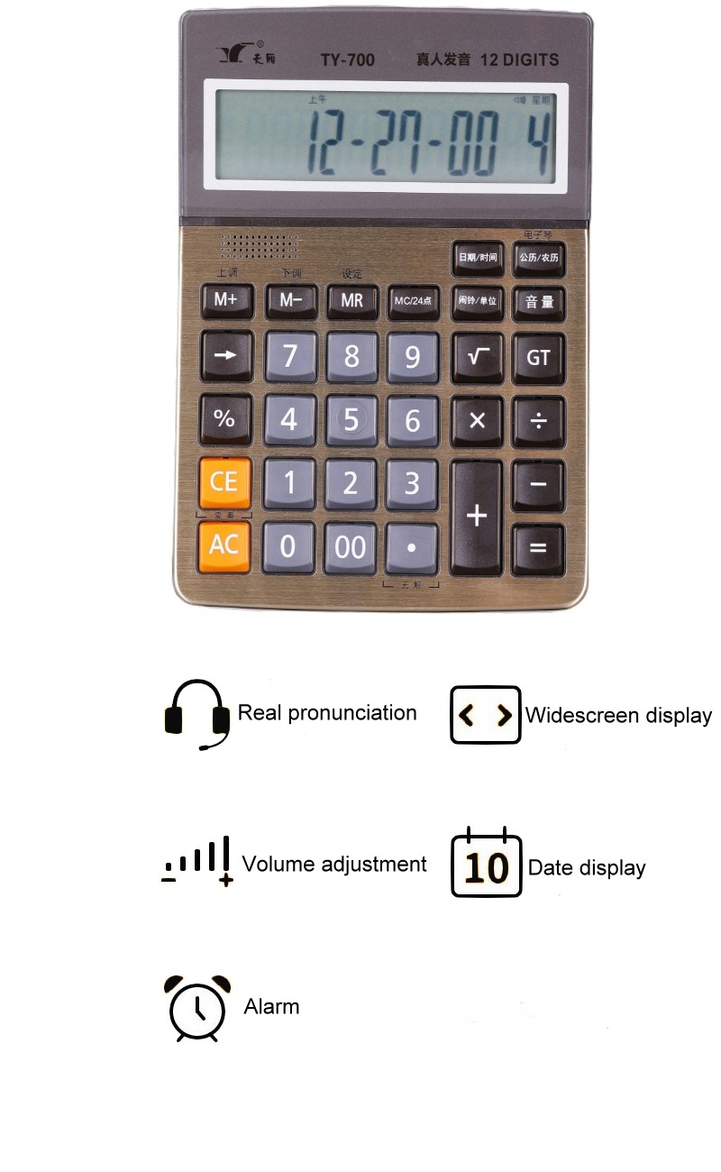 TY-700真人發音12位數金屬面板臺式計算器