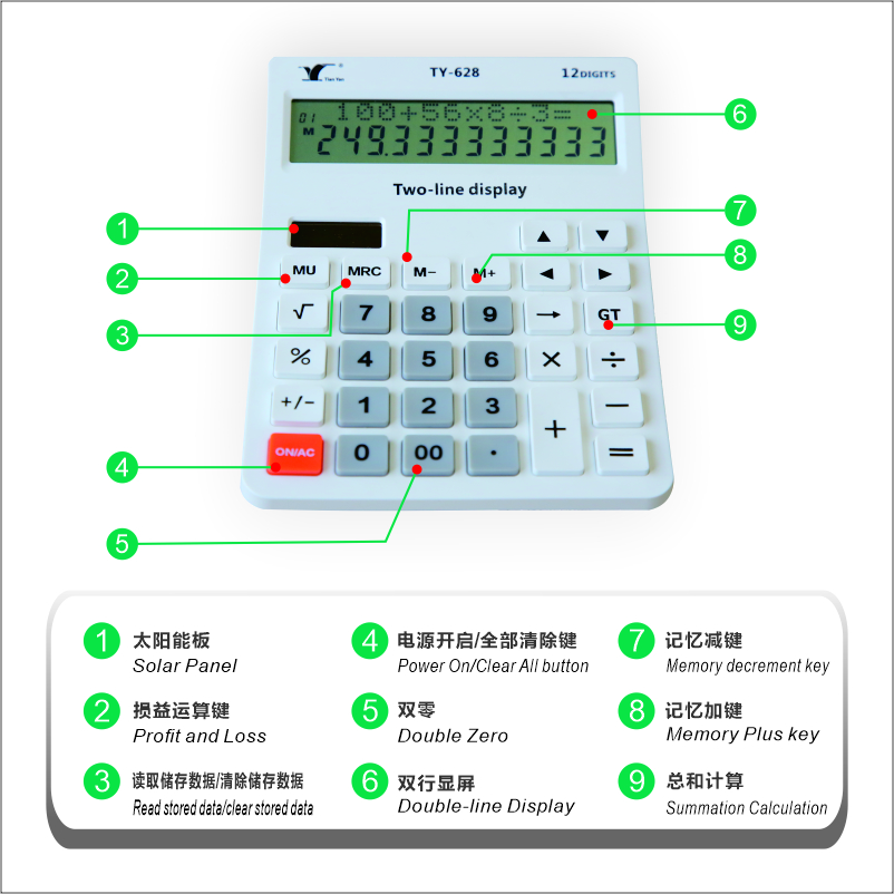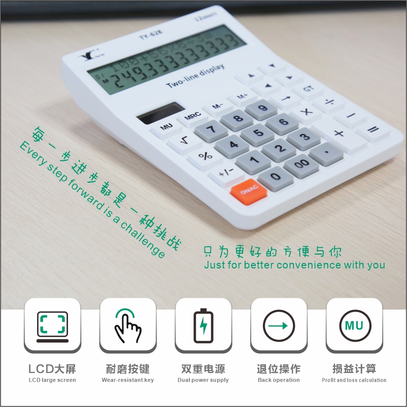 TY-628雙行太陽能臺式計算器雙電源