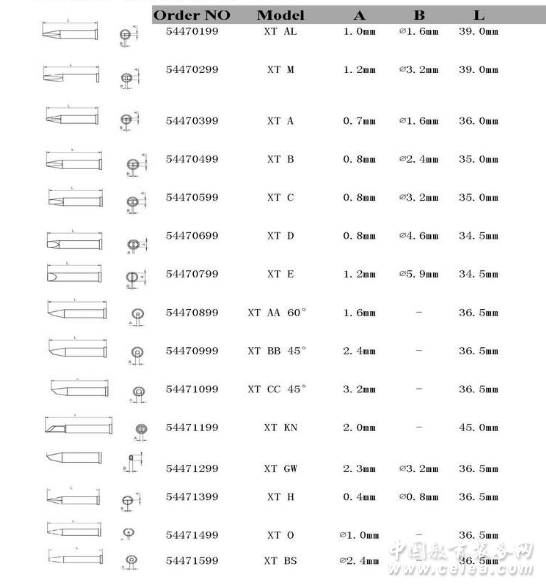 產品型號:XT系列烙鐵頭