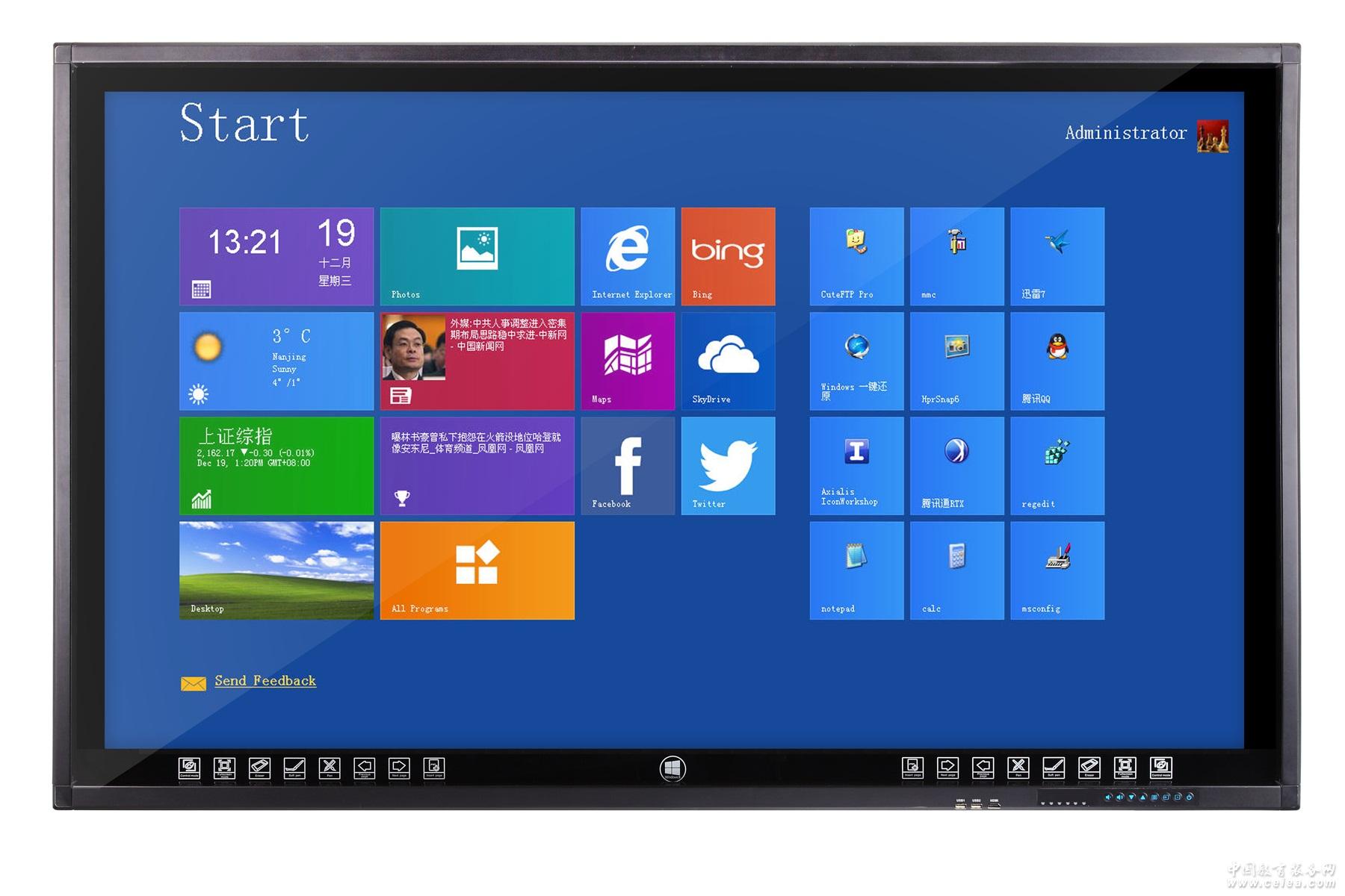 E系列觸摸一體機,是一款包括OPS   PC在內的超薄、超窄邊互動一體機,支持多點操作,并集成了白板快捷鍵、windows8開始菜單快捷鍵的新款機器,該設計使E系列一體機不僅看起來簡約時尚高檔大氣,而且使用更加方便快捷。