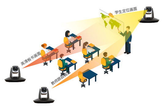 以自動識別目標位置、并動態控制攝像頭跟蹤拍攝,實現教師跟蹤、板書定位、試驗臺定位、確保教師和板書特寫畫面、以及試驗臺操作畫面以及教師在課室范圍內任意位置準確、實時拍攝。