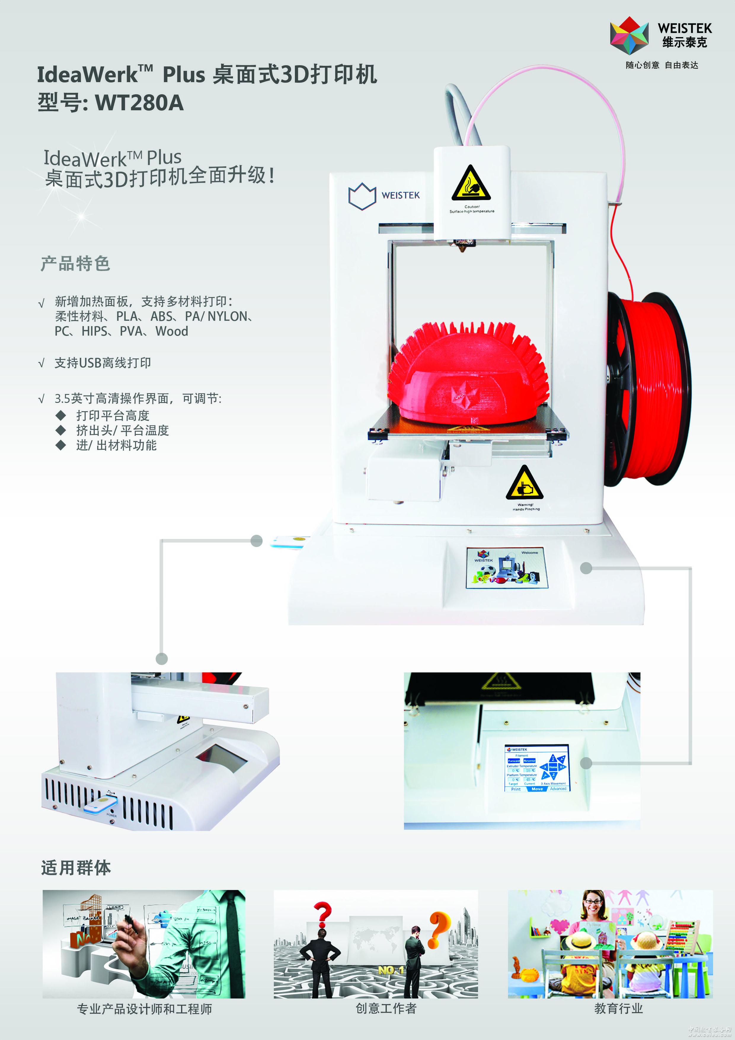 產品詳細介紹IdeaWerk Plus桌面式3D打印機 隨心創意 自由表達 型號:WT280A
