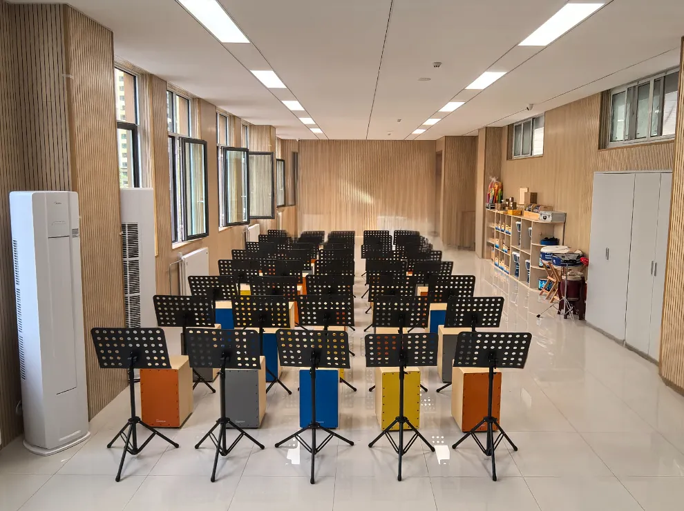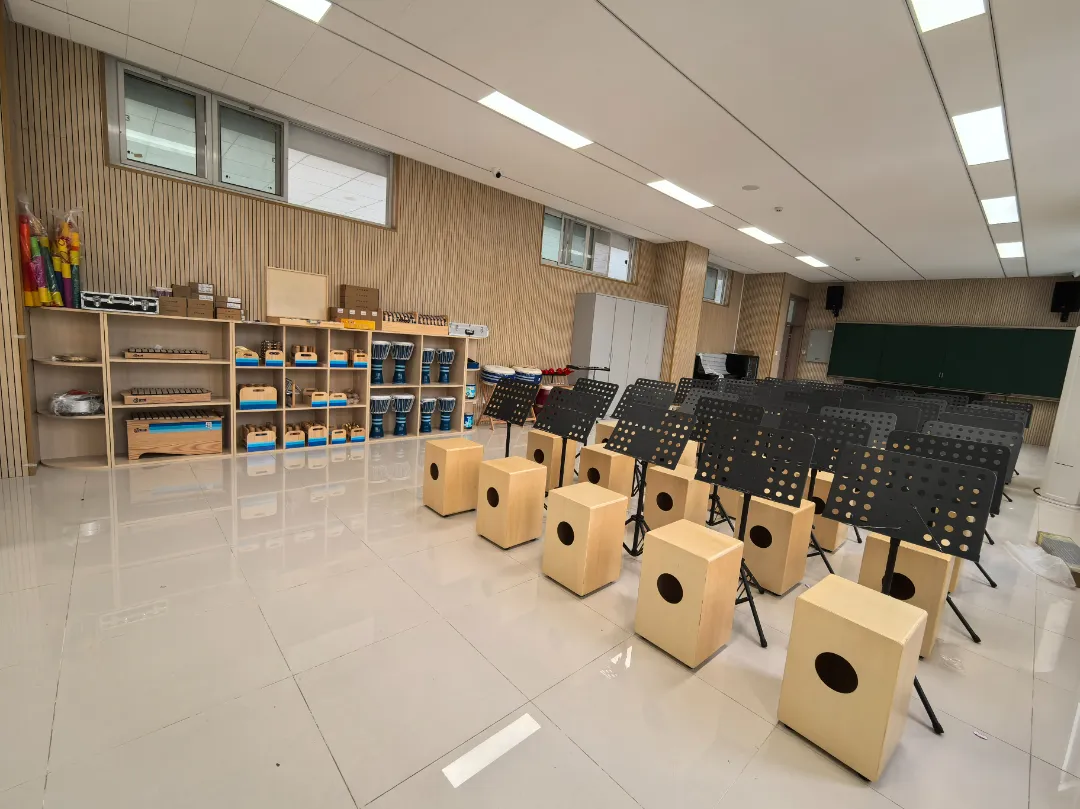 教室滿足中小學(xué)音樂與唱游課程教學(xué)要求,配備多種樂器、教具、課程資源等,能夠滿足學(xué)生聆聽、欣賞、演奏、創(chuàng)作、排練的需求,培養(yǎng)學(xué)生的創(chuàng)造力、自信心、專注性、合作精神、反應(yīng)能力及全面人格發(fā)展,享受音樂帶來的快樂。