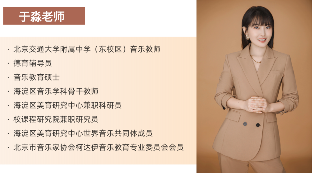 北京交通大學附屬中學(東校區)的于淼老師,深耕音樂教育多年,身兼海淀區音樂學科骨干教師、美育研究中心兼職科研員等多重身份,更在德育工作中持續深耕。