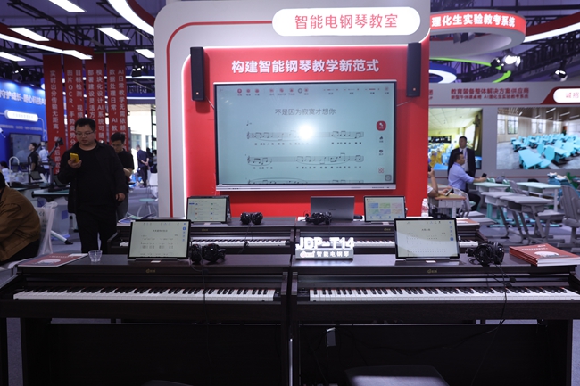 在為期三天的展會中,金三惠展位人流如織,其提出的“智慧平臺+智能硬件+數字資源+智能管控+教學評價”全場景學習生態引發了行業廣泛關注。針對傳統音樂教育中師資不足、教學評價難、互動性差等痛點,金三惠展示了一系列精準適配中小學、中高職及高校需求的解決方案。