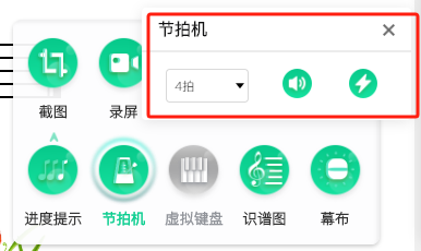 要根據曲譜的拍號選擇節拍機(節拍器)的預備拍哦~,點擊右下角的工具包中的節拍機,有1-6拍可以選擇。
