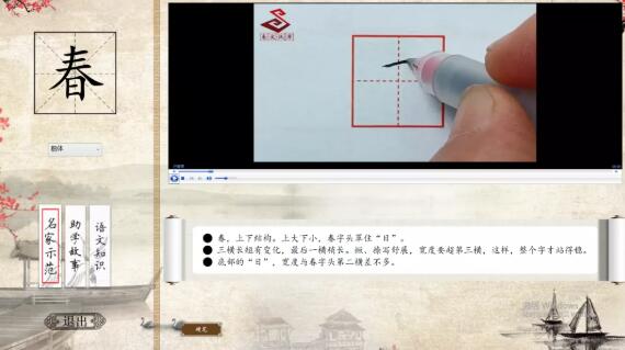 教師要營造良好的課堂氛圍,想方設法激起學生學習的動機和求知欲。恰到好處智慧書法教學系統的課堂講義系統