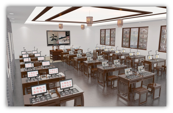 三. EduOffice數字書法雙屏互動教室建設方案 1. 建設思路 《EduOffice數字書法雙屏互動教室教學系統》是依據教育部《中小學書法教育指導綱要》和《全日制義務教育語文課程標準》自主研發的數字書法教學系列中的一款高端數字書法教學產品。 系統延續數字書法教學系列產品的“全息書法”核心理念,遵循“指導綱要”中書法教學的規范要求,在全面涵蓋“教、學、練、評、創”各教學環節的基礎上,雙屏方案彌補了單屏方式的缺陷,學生書寫時便于觀看臨摹原帖、示范視頻,更好解決“讀帖、摹寫、臨寫、創作”各類書寫練習需求,有效提高學習效率。 《EduOffice數字書法雙屏互動教室教學系統》由觸控一體機、書法教學儀、教師屏、雙屏互動學生書法桌硬件及《EduOffice數字書法雙屏互動教室教學系統授課軟件》、《EduOffice數字書法教學備課軟件》等教學軟件構成,實現師生間教、學、練、評、創的雙向互動教學。 教師通過遠程課堂分組管理,指導學生開展單人學習、小組學習;互動臨摹臺采集與傳輸學生書寫儀與屏幕雙路信號,全程記錄所有學生的書寫過程或在線答題,教師大屏呈現、回放、點評、互評;系統同步記錄學生習作結果和書寫過程,可通過習作結果追溯書寫過程,教師及時糾正指導。 雙屏互動學生端滿足課堂跟學、自主學習,通過內嵌學生軟件進行自主讀帖、臨摹、課堂互動答題,并將習作作品、書寫過程、習題答案提交給教師;使用學生軟件配備的全息碑帖、軟硬筆全息字庫及基礎教程等課件資源,開展篆、隸、草、行、楷等字體的軟硬筆自主學習、書法知識學習;多種臨摹練習方式,觸摸屏顯示下發個性化學習內容,互動臨摹臺實現“讀帖、摹寫、臨寫、創作”的書寫學習需求,雙屏組合讓練習靈活高效;運用華樂學堂的視頻資源在課后開展多種書體拓展學習。 2.建設內容及功能描述 1)建設內容 本項目將建成交付一套完整的《EduOffice數字書法雙屏互動教室教學系統》,包括: 1. 書法教學主機系統及輔助硬件 互動系統服務器 大幅面(超A1)教師端書法教學儀16E 教學用21.5寸高清觸控屏 2. 書法互動教室教學軟件系統 書法授課系統 互動教學系統 學生自主學習軟件 硬筆書寫評測軟件 教師示范講評系統 白板互動系統 書法課件播放系統 字帖生成系統 全息書法字庫 書法課件庫與書法云資源 備課軟件 3. 教師書法條案 4. 書法雙屏互動學生桌(2人座,含一體化雙屏互動學習臺、高清臨摹屏) 5. 高清視頻網絡、集控系統及綜合布線 2)功能描述 體系化課件資源,讓教師輕松上好專業書法課 1. 軟筆書法教學資源 1) 與教材配備的課件資源 2) 軟筆楷書、行書、隸書基礎講解課件:300個課件,共1680課時,全息字均具備摹寫動畫、雙路示范視頻(解說版) 3) 與教材同步的隨堂練習課件 4) 書法知識課件: 275個課件,共825課時 2. 軟筆臨摹練習課件 3. 硬筆書法教學資源 全息書法,讓專業書法教師上好特色書法課 1. 全息字庫 配備“綱要”規定的全息楷書、全息行書、全息隸書碑帖與篆、隸、草、行、楷賞析碑帖;仿顏楷書、禮器隸書、王體行書、清代小篆等全息字庫及27款硬筆全息字庫資源,可按教學所需使用。 全息單字均配有7種筆畫講解工具、4種摹寫講解方式、同字比對功能,全息書法碑帖技術實現了碑帖與字、字與筆畫的三級映射關聯,滿足開展任意書體的筆畫教學、結構教學、章法教學、字體教學、書體教學等。 2. 制作個性化臨摹字帖 教師運用軟筆字帖編輯器靈活選取所需碑帖單字、多種臨摹形態來制作練習字帖,在學生臨摹過程中,使用多字示范視頻連續播放,鞏固書寫重點。 3. 編輯PPT課件與嵌入式課件演示 為了沿襲部分教師使用PPT的授課習慣,可將備課軟件的筆畫、碑帖單字、碑帖透明復制到PPT軟件中編輯、演示;授課系統集成PPT課件解析引擎,滿足教師演示保留原始特效的PPT課件。 4. 編輯Word教學設計、書法試卷與分享 運用備課軟件將授課筆畫、碑帖單字、碑帖、課件透明復制到Word中制作教學設計和編輯書法試卷;授課系統集成Word文檔解析引擎,能直接打開教師Word教案,進行教研交流。 3)教學功能示例 一、 師生雙向互動 1. 多種臨摹練習方式,即講即練 2. 推送練習及查看學生臨摹成果 教師能為全體學生、任意小組或任意學生推送組字練習或課堂臨摹練習,并一鍵獲取所有學生的書寫習作成果,選取學生臨摹作品進行針對性講評。 3. 錄制學生書寫過程 實時顯示并錄制所有學生的書寫過程影像,可以追溯書寫習作問題,教師可快速查看每個學生的書寫過程,直觀的記錄和回放書寫的全過程,直觀呈現學生的手姿、筆姿問題,教師可以針對性的點評糾正。 4. 查看學生習題結果 實時顯示并錄制所有學生屏幕的組字練習、拆字練習等課堂互動練習過程,教師也可一鍵收取所有屏幕的課堂互動練習,國內首創針對學生屏幕和學生書寫儀雙路信號采集和網絡傳輸進行優化,便于教師在學生習作與課堂練習自由切換。 5. 遠程控制及分組 教師能夠方便地控制課堂同步秩序,統一進行所有學生主機的開機和關機,控制學生機與教師機同屏顯示,鎖定所有學生的鍵盤和鼠標,以及強制所有學生黑屏,方便教學管理。 6. 學生提交習題及臨摹習作 學生可觀看授課過程、教師示范及完成教師下發的部件組字練習、拆字組字練習、書法知識練習等,還可將完成