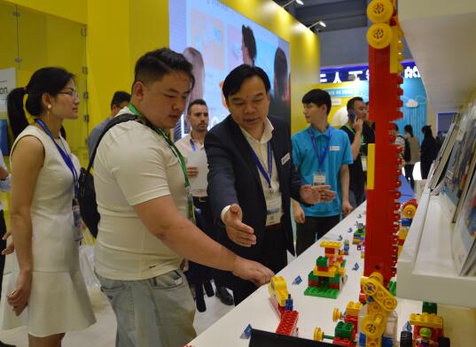 本屆展會,樂高教育主要展示兩款產品:分別是編程啟蒙小火車, 以及剛于今年4月初全球發(fā)布的、專為6-8年級學生設計的STEAM教育解決方案——LEGO®