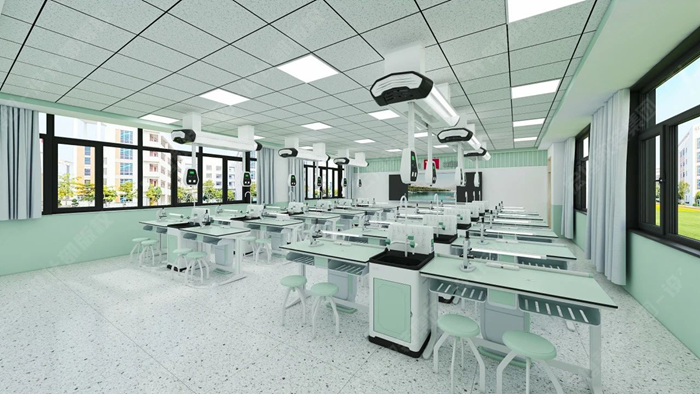 新型生物實驗室充分掌握生物作為一門實驗科學的學科特點,通過空間布局、產品組合、色彩搭配、微環境營造等途徑,突出生物教學實驗室的學科特點,實現裝備與教學內容、教學方式的深度融合,培養學生的學科研究方法和科學精神。