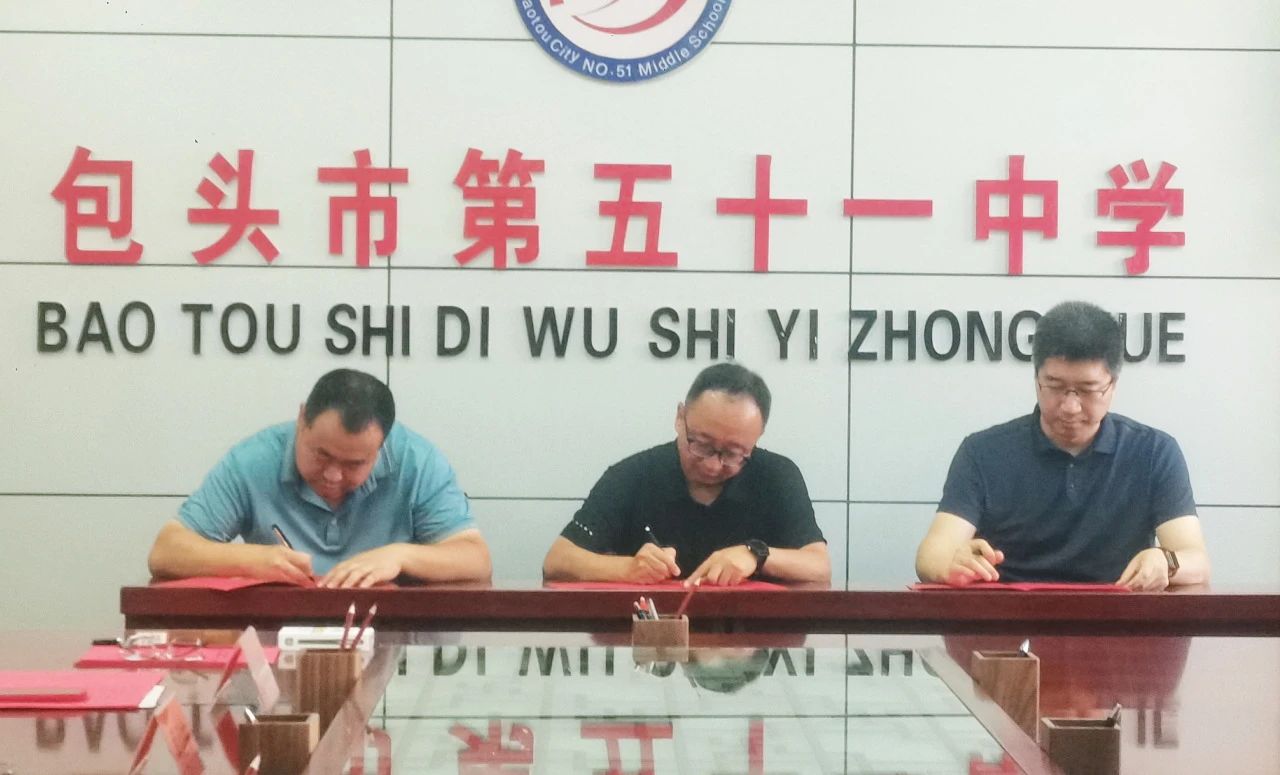 內蒙古師范大學教育學院副院長邊琦、包頭市第五十一中學校長汪健、現代中慶常務副總經理陳越代表三方簽署戰略合作協議