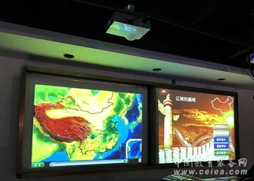 地理是一門探索地理現象、地理事物以及人與自然和諧關系的學科,涉及的內容多、廣,在傳統教學中依靠口述講解,無法講明有關的地理現象和事物運動變化情況,學生也無法深入理解有關地理知識和規律。而環幕示教系統在實際授課中通過視頻影像來動態展示地理現象和事物的發展過程,從而使學生深刻了解和把握事物現象之間的聯系性。如在講解“地勢地形”部分知識的時候,教師可以將數字立體地形導入到課堂中,通過眼觀、手觸立體地形就能知道各省地貌,如江浙滬長江三角洲多為平原;貴州多為高原等。當教師通過手中的控制筆點擊模型或白板上的按鈕播放PPT,學生們便能直觀了解世界各大洲地形,山脈河流概況以及全球、中國主要氣候類型的分布地區等。