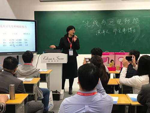 深圳市眼科醫(yī)院科研科長,哈佛大學博士后——鄧宏偉博士,作為眼視光醫(yī)學界的泰斗就“光線與近視防控”話題發(fā)表了演講,她從青少年兒童近視成因的角度,分析一個良好健康的光環(huán)境,對孩子防控近視的重要意義。