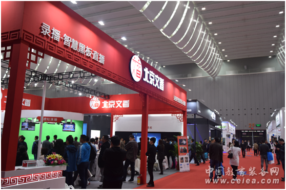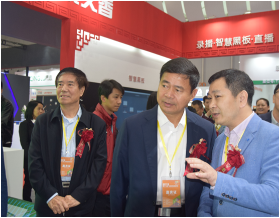 中國教育裝備行業協會會長王富、廣東省教育廳副巡視員邱克楠等領導們在北京文香信息技術有限公司展臺參觀