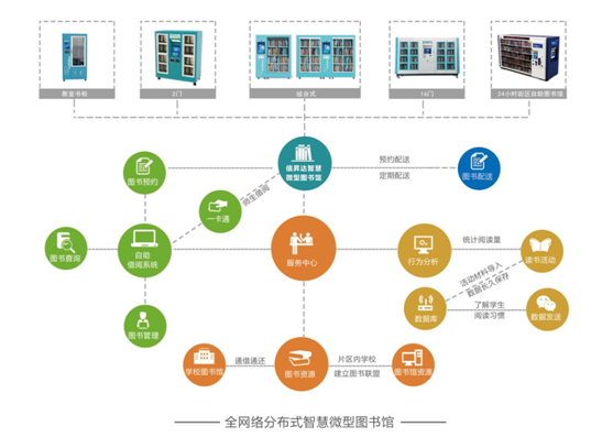 可單獨部署或搭配集中式圖書館建設,打破圖書借還時間和空間上的限制,可安裝在教室、教學樓、宿舍樓或學校大門口,實現校園內圖書的快速流通和24小時自助借還服務。