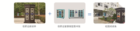 智慧微型圖書館搭配信昇達朗讀亭可構成校園閱讀角方案,將閱讀和朗讀相結合,開啟校園文化建設信息化、智慧化篇章,校園圖書流通大大提高,館藏資源活絡起來,校園閱讀氛圍大幅度提升。