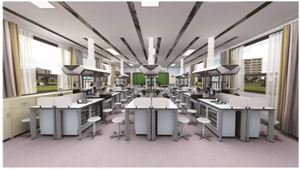 “實驗室模塊化頂裝系統”,頂裝集成、釋放室內空間,滿足實驗室多種布局和教學需求;水、電、風集成供給,簡化實驗室內部設計,施工更便捷;可根據實際需求加減或更換功能模塊,滿足個性化需求。
