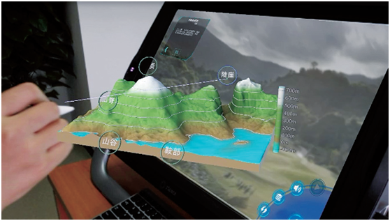 “寰宇地理VR教學系統(tǒng)”依托桌面級便攜式一體化虛擬現(xiàn)實設(shè)備,深度集成VR、AR、MR等多種新興技術(shù),將地球和地圖、陸地和海洋、天氣與氣候、國家和地區(qū)等中學地理課程的教學難點直觀、全景、高清地呈現(xiàn)出來,讓學生在游戲和探索中深度吸收轉(zhuǎn)化學科知識。整套系統(tǒng)簡易輕便、無眩暈感,兼顧人機交互、師生教學和生生互動,徹底打破虛擬和現(xiàn)實的邊界,是VR軟硬件技術(shù)在地理學科教育的創(chuàng)新性應用,更是一間便攜的學科實驗室、一座移動的科技館。
