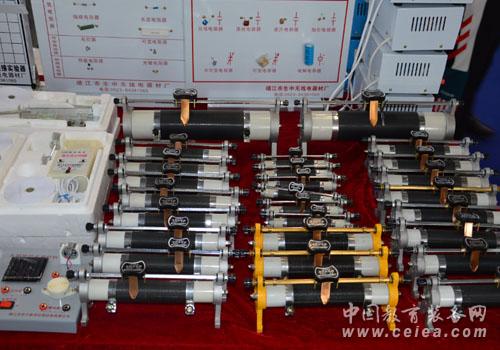 本屆展會,靖江無線電器材廠帶來的主要產(chǎn)品有電磁打點計時器,電火花計時器,初高中學生電源,教學電源系列,滑動變阻器系列,平拋運動、氣體定律、向心力、碰撞等實驗器系列及可拆變壓器、變壓器原理說明器、小型變壓器系列。2000年新教材配備的新產(chǎn)品,油膜實驗器、電學元件黑箱,已通過教育部部級鑒定,傳感器應用實驗器、電火花計時器也已通過了省級鑒定,受到了廣大用戶的一致好評。