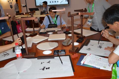 作為智慧書法教室開創(chuàng)者,華文眾合攜第五代智慧書法教室參加,并在展會上推出了新的軟硬件。