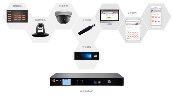 本方案由智慧黑板、錄播一體機、高清攝像機、圖像跟蹤一體機、資源管理平臺、專業音頻系統等產品組成。