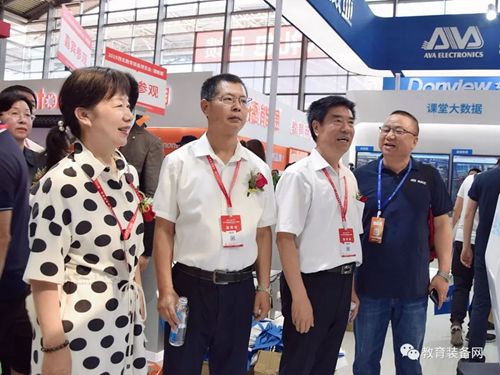 ▲中國教育裝備行業協會會長王富、陜西省教育廳、陜西省教育廳教育技術裝備管理中心領導巡展現場