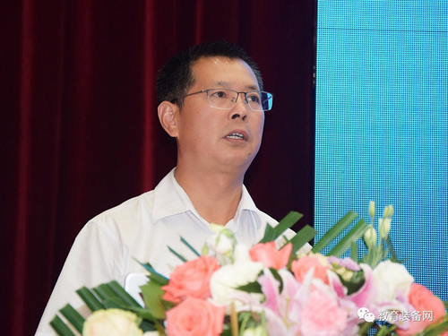 ▲中國教育技術協會首席專家、中國教育裝備行業協會研究院副院長施建國在教育裝備發展與應用論壇上作主旨演講