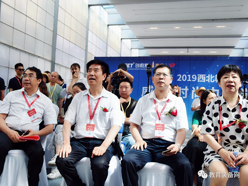 ▲教育部關(guān)心下一代工作委員會(huì)常務(wù)副主任、中國(guó)教育裝備行業(yè)協(xié)會(huì)會(huì)長(zhǎng)王富,陜西省委教育工委委員、陜西省教育廳副廳長(zhǎng)趙昶葆,陜西省教育廳教育技術(shù)裝備管理中心主任趙夢(mèng)等領(lǐng)導(dǎo)到場(chǎng)參觀。