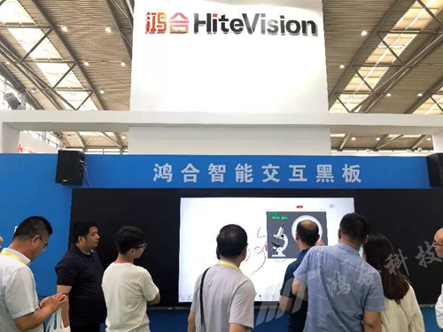 在琳瑯滿目的展品中,鴻合科技的高科技智慧黑板吸引了眾多參觀者的目光。據(jù)悉,新一代鴻合智能交互黑板采用全貼合工藝及納米電容觸控技術(shù),在保留粉筆書寫、多人觸控、多媒體教學(xué)等功能的同時(shí),還擁有諸多技術(shù)創(chuàng)新,比如將色域從72%提升至85%,還原屏幕真實(shí)色彩,為學(xué)生帶來(lái)真實(shí)“視界”。此外,還新增去藍(lán)光護(hù)眼功能,為師生打造健康綠色的學(xué)習(xí)環(huán)境。