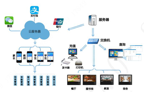 電子班牌系統(tǒng)由三個部分組成:云平臺、校園平臺管理系統(tǒng)、數(shù)字班牌終端。